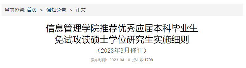 - 普通渠道:学院会依据推免细则对大家进行排名,一般综合排名前25%的同学可以拿到推免资格,具体细节详见推免细则和每年9月份学院官网的推免工作安排;